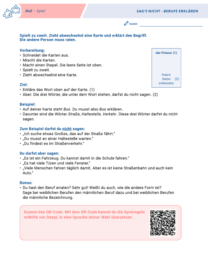 Startseite | Unterrichtsmaterial | Deutsch als Zweitsprache | Schule und Beruf
