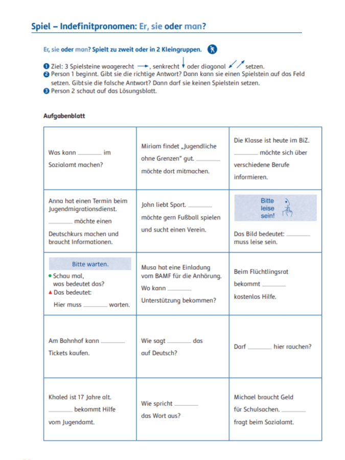 Startseite | Unterrichtsmaterial | Deutsch als Zweitsprache | Spiele und Sonstiges